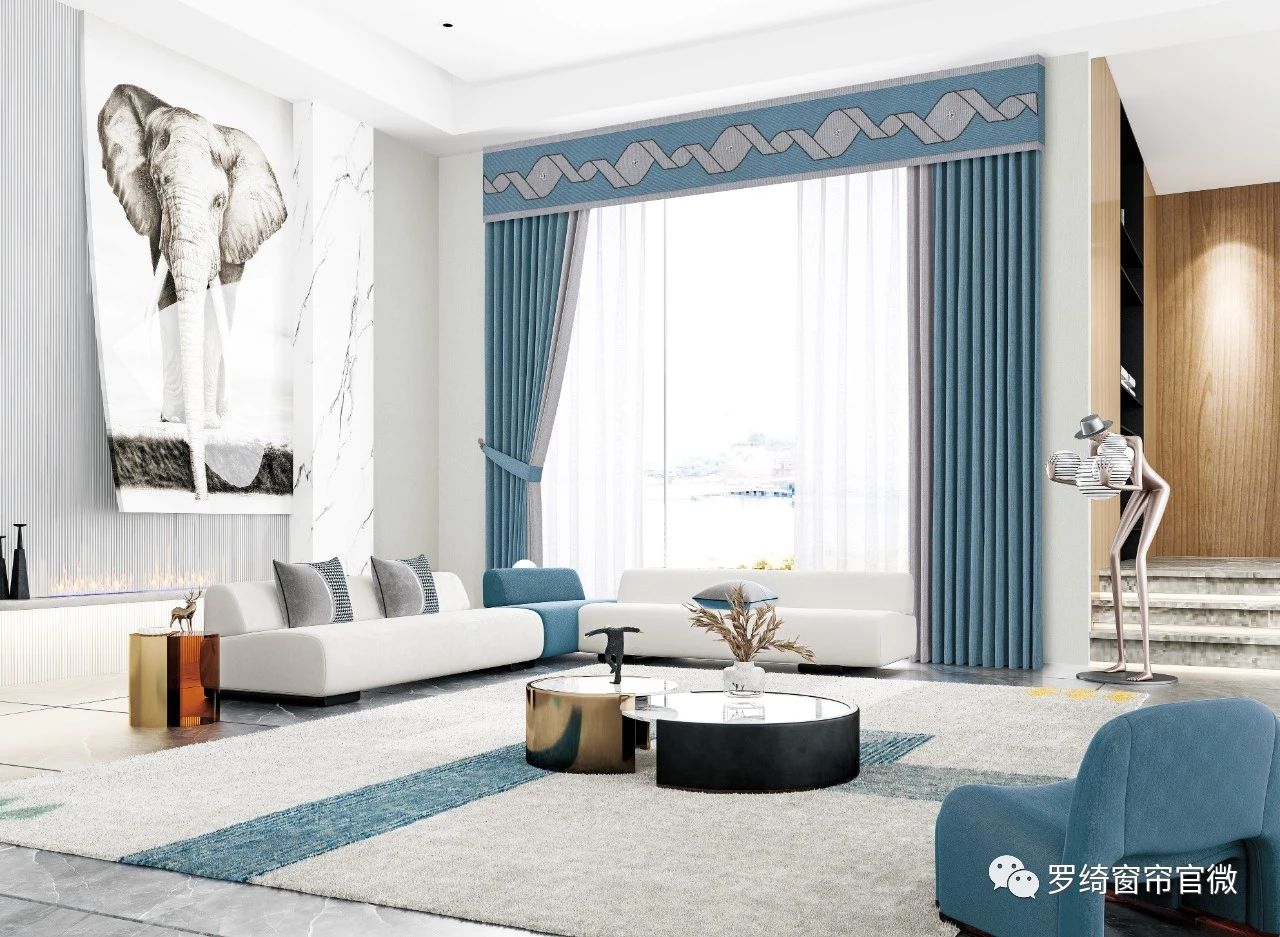 不同的灰藍搭配比例,就會產生不一樣的氣場與層次感,接下來先看看灰色作為主布色大麵積出現的窗簾搭配。